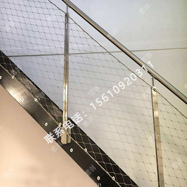 樓梯防護(hù)繩網(wǎng):不銹鋼繩網(wǎng)(扶桿圍欄網(wǎng))(扶桿防護(hù)網(wǎng))(扶桿軟網(wǎng))(扶桿柔性網(wǎng))是由不銹鋼絲繩上下絞織與鋼套擠壓而成,鋼絲繩直徑有1.0、1.5、2.0、3.0mm,鋼絲繩結(jié)構(gòu)有7*7、7*19、1*19等,材質(zhì)有304、304L、316、316L,其次我們還可以提供熱鍍鋅鋼絲繩網(wǎng)產(chǎn)品。鋼套材質(zhì)主要采用不銹鋼套,其它還有鋁套、銅套、銅鍍錫套以供客戶選擇...